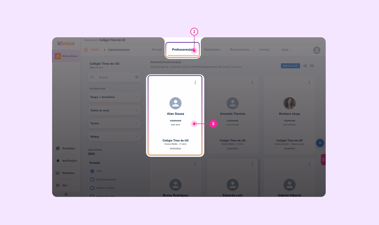 - No menu superior, vá até Professores